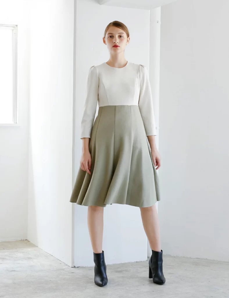 上品でオシャレ感のあるバイカラーワンピースは、淡いカラーがおすすめです。華やかさが際立ち、お祝いの場面にマッチします。