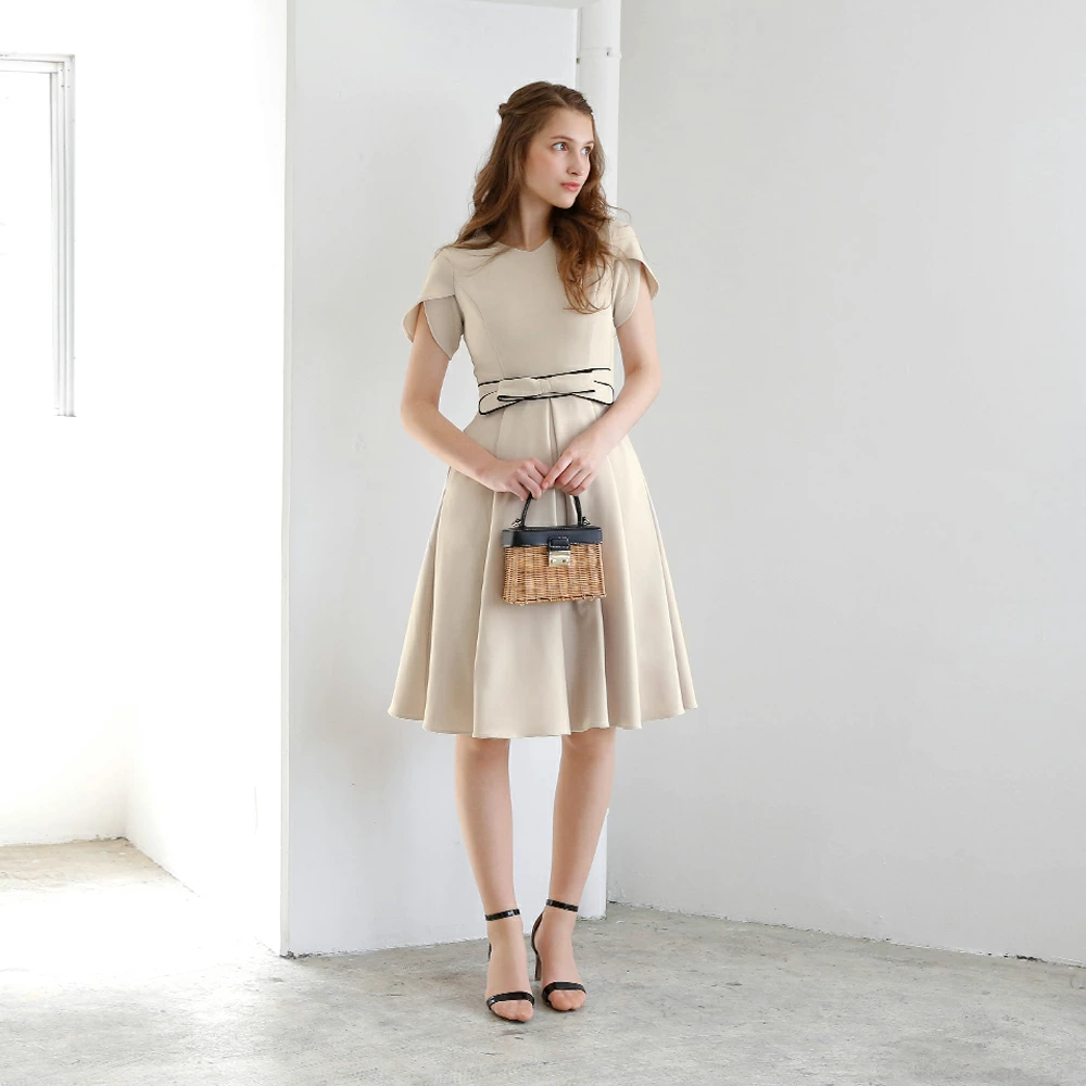 ウエストラインが程よくフィットし、Aラインのフレアワンピースはエレガントさが際立ちます。