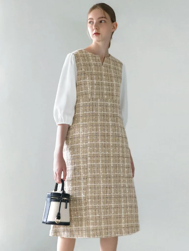 高見え素材のツイードは華やかさも兼ね備えており、入園式などのお祝いの場におすすめの素材です。
