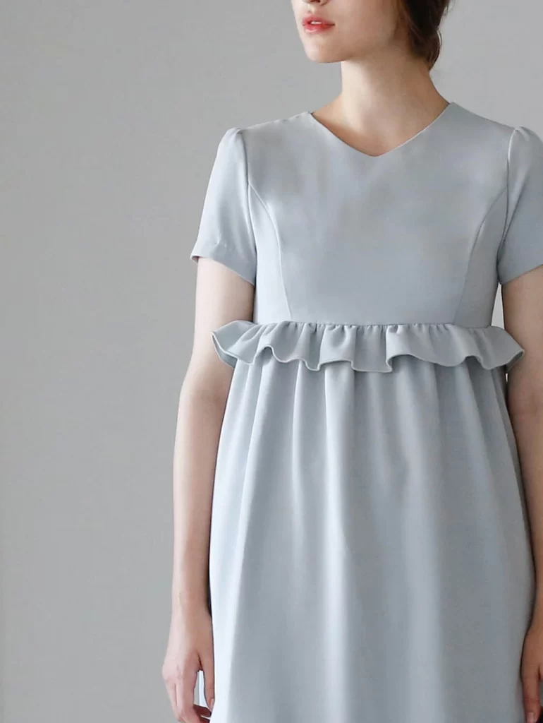 胸下からふんわり広がるシルエットが女性らしく、高めのウエストマークがあることで、脚長効果も抜群です。