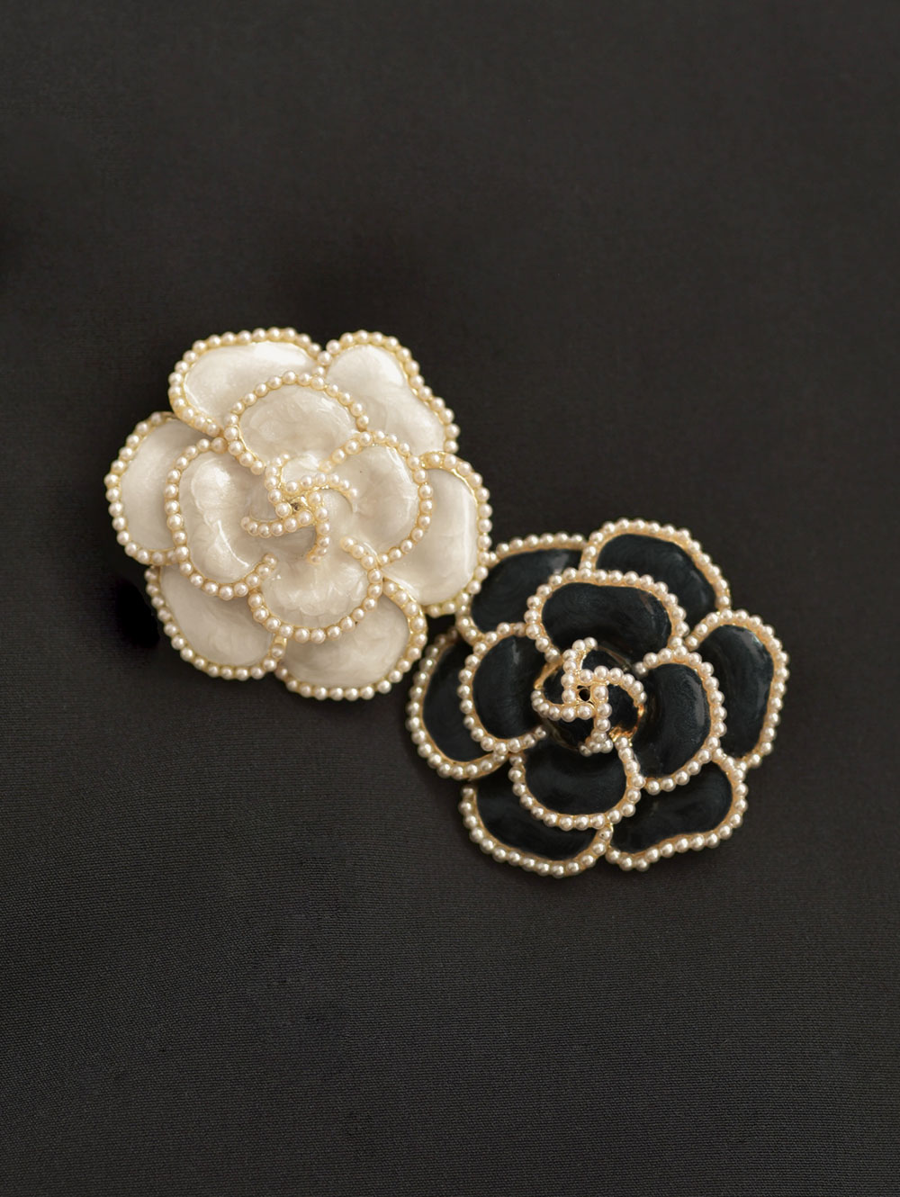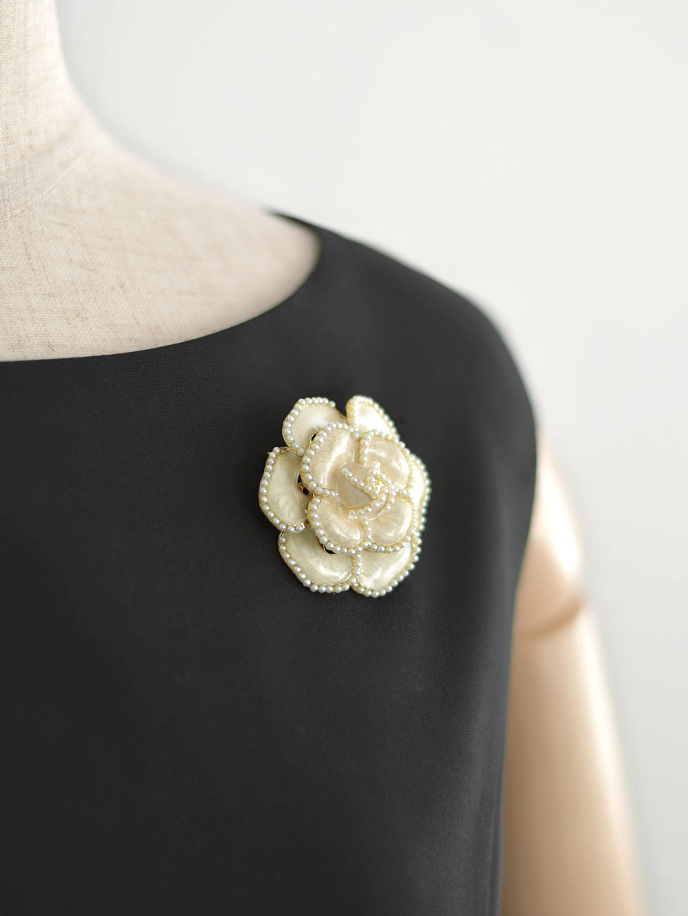 胸元には、上品なきらめきを添える【カメリア ブローチ】を。 華やぎをプラスしつつ、七五三の厳かな場にもふさわしい落ち着きが保たれます。
