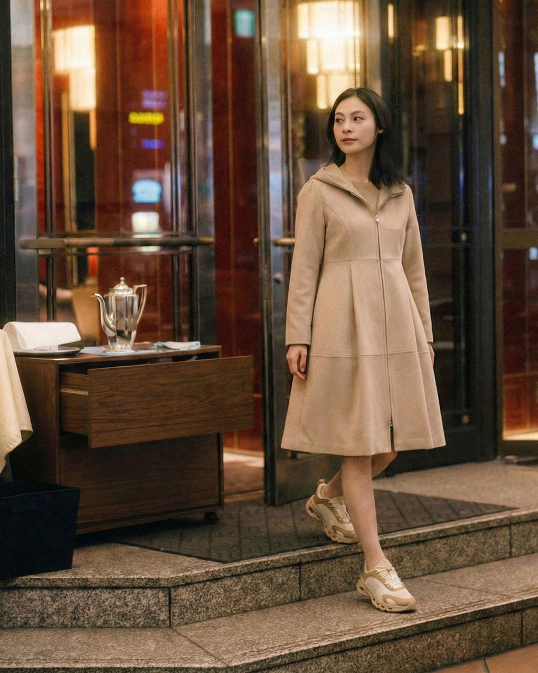 ワンピースとスニーカーは、秋冬の“大人の上品さ”をもっと自然に引き出してくれる組み合わせ。