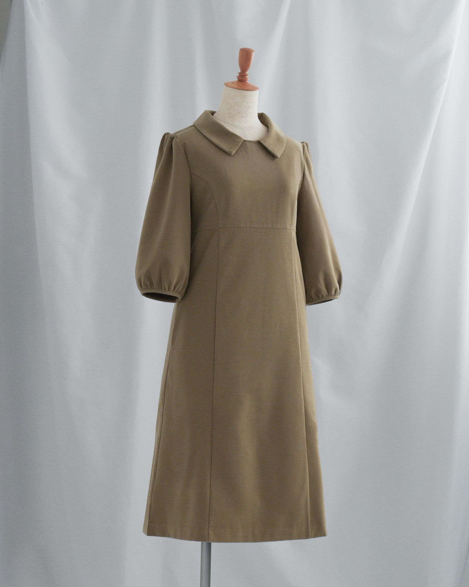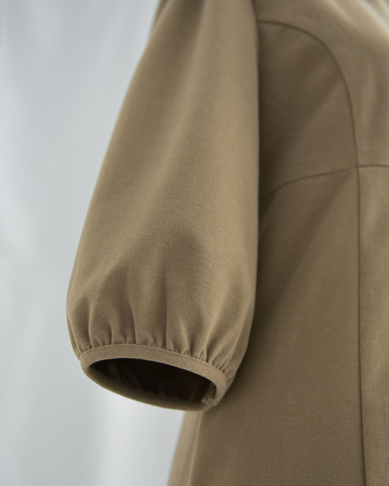 装飾を求めずとも、袖の丸みやAラインの広がりが、自然と佇まいを整えてくれるワンピースです。