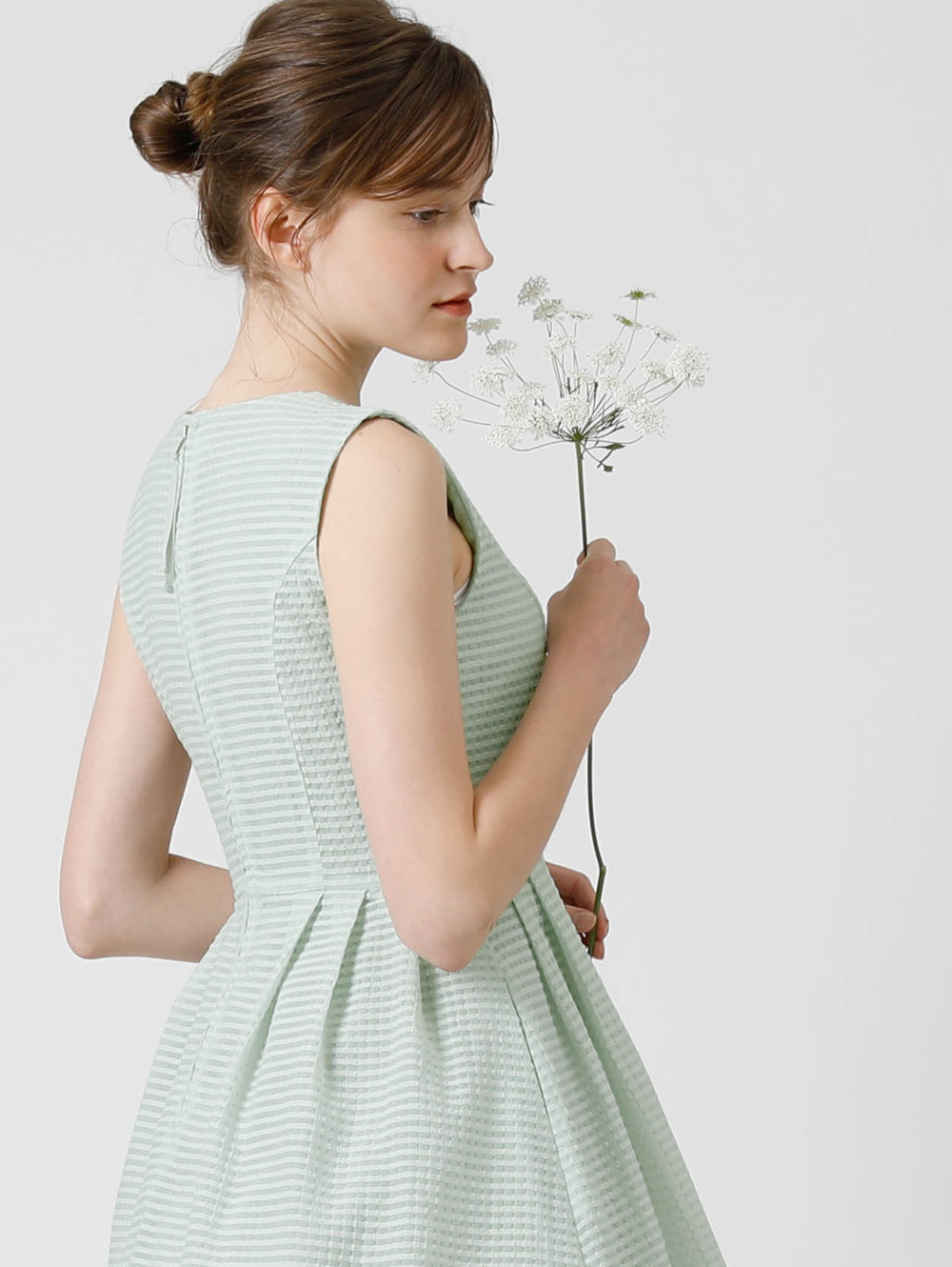 締め付けすぎない[理想的フィット&フレア]で、くびれを生むタックデザインは美シルエットを叶えます。窮屈さが無いのに、誰もをスマートに細見せしてくれる、クローゼットに一着あるだけで頼もしいワンピースです。