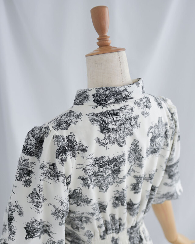 忙しい朝も、きちんと見える装いが叶う。ふわりと優雅に広がるシルエットが、自然体でいながらきちんとした印象へと導いてくれる「Ray【ワンピース レーヴ】」。 清楚な襟に添えた一粒パールが、知的な華やぎをプラス。顔まわりをすっきり見せながら、さりげない上質感を添えてくれます。 肩からふんわりと広がるバルーン袖は、二の腕をやさしくカバーしつつ、華奢なシルエットを演出。着るだけで、自然と佇まいに自信が生まれるデザインです。 さらに、ウエスト後ろにはギャザーゴムを採用。体にしなやかに沿いながら、締めつけ感なく美しいラインを描きます。楽なのにきちんと見える。この心地よさが、毎日の装いをそっと支えてくれます。 素材には、軽やかで透明感のあるシフォンを使用。歩くたびに優しく揺れ、涼しげな印象をもたらします。トワルドジュイ柄の繊細なプリントが、シフォンの軽やかさと絶妙にマッチ。 洗練されたムードを引き立てながら、品格あるスタイルへと導きます。 お顔合わせやお呼ばれ、通勤からオフィスシーンまで。 どんな場面でも凛とした美しさを纏える、特別な一着です。 お家洗いできる気軽さも、デイリーに嬉しいポイント。 自然体で、でも上品に。 「Ray【ワンピース レーヴ】」が、あなたらしい美しさをそっと引き出します。