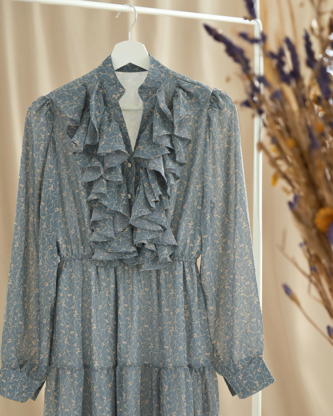 胸元のボリュームたっぷりのフリルが、豪華でありながらも上品な印象を演出してくれます。目を引くデザインで、大人の女性にぴったりな華やかさと品格を兼ね備えた1着に仕上がりました。■華奢見せ、上品透け袖