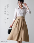 トップスにはさらりとした涼しげシャツ素材を、スカートには肌触りの良い快適スムース素材を採用しました。しっかりとした生地感で、美しいシルエットを長くキープできる1着です。